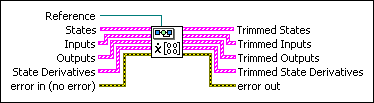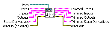 State Derivatives specifies the state derivative conditions that you want to satisfy when trimming a subsystem. You specify conditions and the values of these conditions using the SIM Set Parameter Value VI.