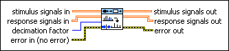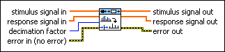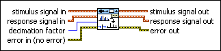 Reduces the sampling rate of stimulus and response signals using decimation. Wire data to the stimulus signal in and response signal in inputs to determine the polymorphic instance to use or manually select the instance.