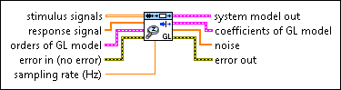 Estimates the parameters of a general-linear (GL) model for an unknown system. Wire data to the stimulus signal and response signal inputs to determine the polymorphic instance to use or manually select the instance.