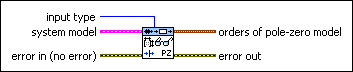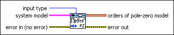 input type specifies whether to obtain the number of poles and zeros of the transfer function between the stimulus and the response of the system model or of the transfer function between the noise and the response of the system model.