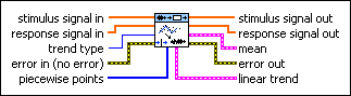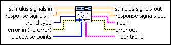 Removes mean and linear steady-state trends from stimulus and response signals. Wire data to the stimulus signal in and response signal in inputs to determine the polymorphic instance to use or manually select the instance.