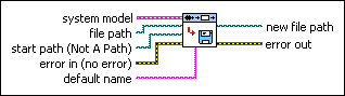 new file path returns the path of the file to which this VI saves the system model. You can use this output to determine the path of the file that you saved using the Select a file to save system identification model dialog box. new file path returns <Not A Path> if you click the Cancel button in the dialog box. | ||