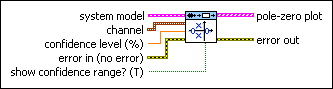 This VI computes the zeros and poles of the transfer function for one input-output pair of a system model. Use the SI Pole-Zero Plot Indicator to display the pole-zero plot on the front panel window.