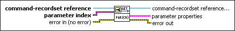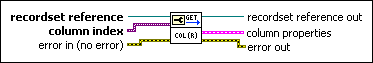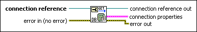 Gets properties of the object as determined by the inputs. This VI works for connections, commands, recordsets, columns, and parameters. Wire data to the reference input to determine the polymorphic instance to use or manually select the instance.