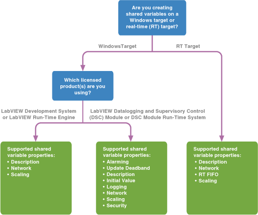 Use the following flowchart to determine which shared variable properties you can edit: