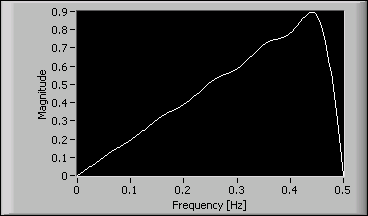 In the previous figure, the odd order number 19 determines that the resulting differentiator is a Type IV differentiator. The following figure shows the magnitude response of the resulting Type IV differentiator: