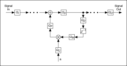 The LabVIEW Digital Filter Design Toolkit uses quantizers to store different quantization settings for the coefficients and the intermediate operands and results. You must configure all quantizers correctly in a fixed-point filter implementation.