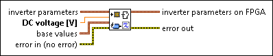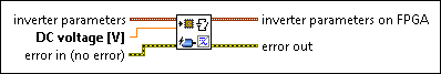 inverter parameters on FPGA returns the inverter parameters, such as DC voltage, IGBT forward voltage drop, diode forward voltage drop, and conductance, for use by the inverter simulation on an FPGA target. Use the front panel controls in an FPGA VI to transfer the inverter parameters from the host computer to an FPGA target. | ||||||