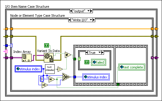 - Select the output case from the I/O Item Name Case structure and the Write I/O case from the Node or Element Type Case structure.