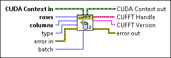 CUDA Context out returns the device context in which LabVIEW initializes the FFT library. | ||||||||||||