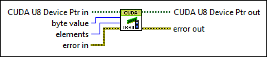 Sets each byte of each element in memory on the device. This VI sets each byte up to the number of elements provided.