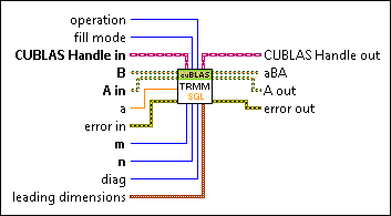 CUBLAS Handle in specifies the initialized CUBLAS library to use for the BLAS calculation. For example, you can wire the CUBLAS Handle output from the Initialize Library VI to specify the CUBLAS handle to the CUBLAS library you already initialized. This input also determines the device that executes the function. | ||||||