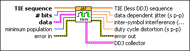 TIE sequence specifies the time interval error measurements from which to calculate data-dependent jitter values. You can use the Time Interval Error VI to generate these measurements. | ||||||||
