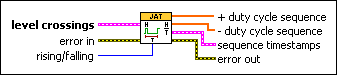 level crossings contains information about the locations of level crossings in the original waveform. You can use the Level Crossing VI to generate this cluster.