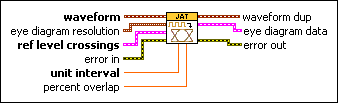 Divides a waveform into segments and returns data you can use to create an eye diagram. Wire data to the waveform input to determine the polymorphic instance to use or manually select the instance.
