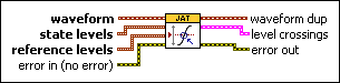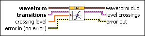 Measures the times and locations a waveform crosses a particular voltage level. The Jitter Analysis VIs use level crossings to identify a common position in all transitions that you can use for comparison. Wire data to the transitions input and the waveform input to determine the polymorphic instance to use or manually select the instance.