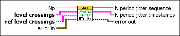 Np specifies the edge interval at which to compute period jitter. For example, if Np is 2, this VI subtracts the jitter value at the first edge in the waveform from the jitter value at the third edge, the jitter at the second edge from the jitter at the fourth edge, and so on to compute the N period jitter sequence. | ||||||||||||||