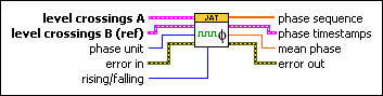 This VI uses level crossings B (ref) as the reference against which to measure the phase difference in level crossings A. Thus, when level crossings A occurs after level crossings B (ref), the phase measurement is positive. When the opposite is true, the phase measurement is negative.