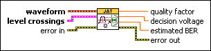 Measures the quality of a waveform based on the histograms at the base and top of an eye diagram formed from the waveform. Wire data to the waveform input to determine the polymorphic instance to use or manually select the instance.