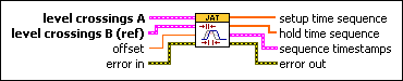 level crossings B (ref) contains information about the locations of level crossings in a waveform. level crossings B (ref) serves as the reference against which this VI compares level crossings A. You can use the Level Crossing VI to generate this cluster from a waveform.