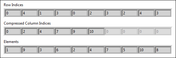 Sparse matrix storage formats are a specialized data structure that stores only nonzero elements in a sparse matrix. LabVIEW supports the following sparse matrix storage formats.