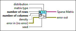 seed specifies how this VI generates the sparse matrix randomly. If seed is greater than 0, LabVIEW uses seed to generate the internal state directly. If seed is less than or equal to 0, LabVIEW uses a random number to generate the internal state. The default is -1. | ||||||