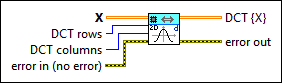 DCT columns specifies the number of columns of the 2D DCT. This VI truncates or zero pads X to an m-by-n array before performing the DCT, where m is DCT rows and n is DCT columns. |