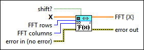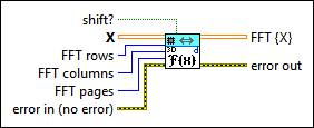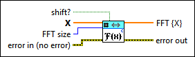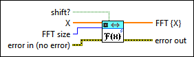 shift? specifies whether this VI shifts the DC component to the center of FFT {X}. The default is FALSE. |