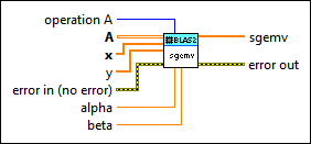 sgemv returns a vector of the same size as y. For the first N elements, this VI returns the results of alpha*op(A)*x + beta*y. For any remaining elements, this VI returns the value of the element in y with the same index. | ||||||