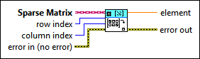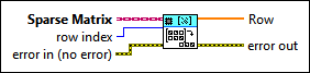 row index specifies the row index of the element to get from Sparse Matrix. The row index must be in the range of 0 and the number of rows in Sparse Matrix - 1. The default is 0. |