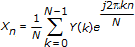 For a 1D, N-sample, frequency domain sequence Y, the following equation defines the inverse discrete Fourier transform (IDFT):