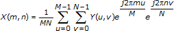 For a 2D, M-by-N frequency domain sequence Y, the following equation defines the inverse discrete Fourier transform (IDFT):