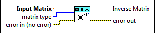 Input Matrix specifies a square matrix. If Input Matrix is empty or singular, this VI sets Inverse Matrix to an empty matrix. | ||||||||