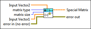 matrix size specifies the dimension size of Special Matrix. The default is 1. This VI ignores matrix size unless the value of matrix type is Identity. | ||||||||||||