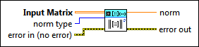 Input Matrix specifies a square or rectangular matrix. If Input Matrix is empty, this VI sets norm to NaN. | ||||||||