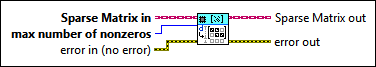 Sparse Matrix out returns Sparse Matrix in with the maximum number of nonzeros you specify in max number of nonzeros. |