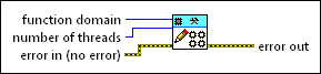 By specifying the function domain as Linear Algebra and specifying the number of threads as 2 in the Set Number of Threads VI on the left, the number of threads to use for linear algebra functions is two. You can specify a different number of threads to use for all other functions except linear algebra functions by adding another instance of the Set Number of Threads VI to the block diagram. In the previous figure, the Set Number of Threads VI on the right specifies the function domain as Default and specifies the number of threads as 1. Therefore, the number of threads to use for all functions except linear algebra functions is one. You can use the Get Number of Threads VI to get the number of threads for each function domain, as the following table shows: