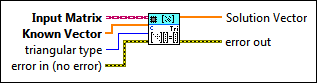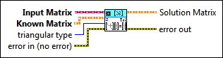 Solution Matrix returns the solution X to AX = Y where A is the Input Matrix and Y is the Known Matrix. | ||||