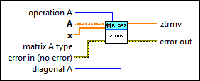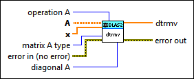 A specifies a triangular matrix. This VI multiplies the first N rows and N columns of op(A) by x, where N is the number of elements in x. op(A) must have at least N rows and N columns. | ||||||