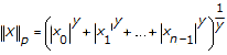 norm type specifies the type of vector norm to compute. Let X represent the Input Vector. ||X||p represents the norm of X, where p are the different types of vector norms, such as 1-norm, 2-norm, and so on, that this VI can compute.
