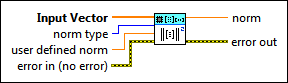 Input Vector specifies a vector. If Input Vector is empty, this VI sets norm to NaN. | ||||||||||