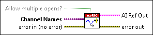 Allow multiple opens? specifies whether to allow opening the specified channels more than once. The default is FALSE. You must set Allow multiple opens? to TRUE if you also use the specified channels in an Express VI. |