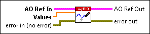 AO Ref In specifies the reference to the analog output channels to which to write values. Use the Open VI to open a reference to the analog output channels. Do not modify the AO Ref In values. |