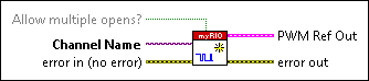 PWM Ref Out returns a reference to the PWM channel that you specify. |