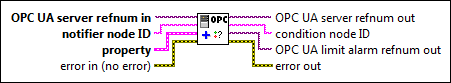 OPC UA limit alarm refnum out returns the reference to the OPC UA limit alarm condition. | ||||||||||||||||||||||||||