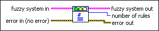fuzzy system out returns the complete information for a fuzzy system. Wire this output to the fuzzy system in input of another VI. |