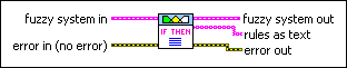 fuzzy system in specifies the complete information for a fuzzy system. Wire the fuzzy system out output from another VI to the fuzzy system in input of this VI. |