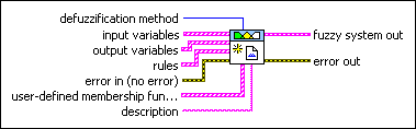 fuzzy system out returns the complete information for a fuzzy system. Wire this output to the fuzzy system in input of another VI. | ||||||||||