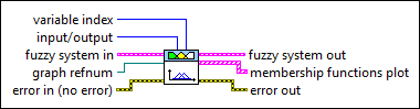 fuzzy system in specifies the complete information for a fuzzy system. Wire the fuzzy system out output from another VI to the fuzzy system in input of this VI. | ||||
