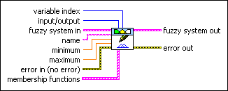 fuzzy system in specifies the complete information for a fuzzy system. Wire the fuzzy system out output from another VI to the fuzzy system in input of this VI. | ||||